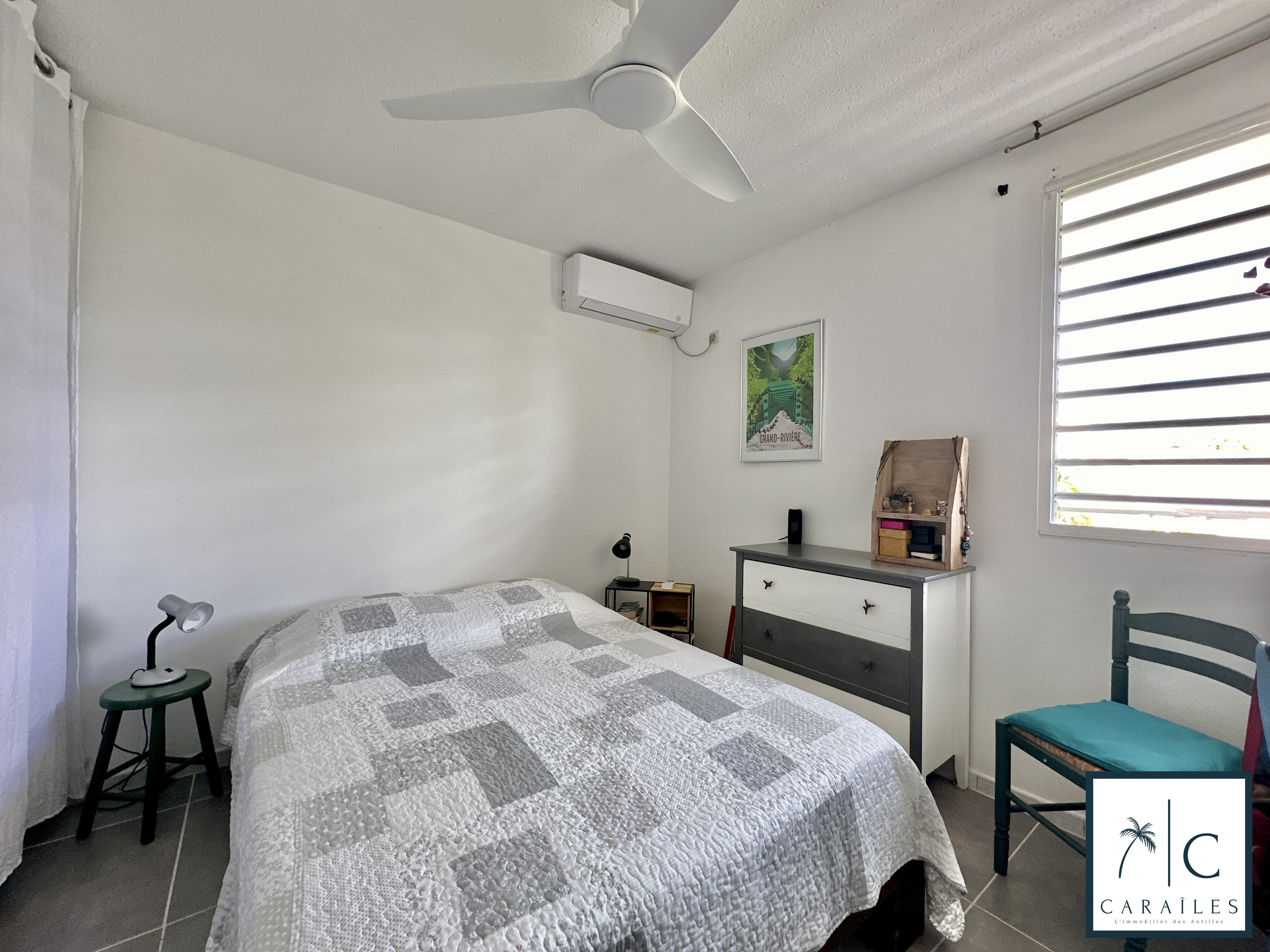 L'appartement dispose d'un séjour / cuisine de 26m². Les chambres de 10,50 et 10m² sont équipées de climatisations et de rangements . La cuisine, moderne et fonctionnelle, est entièrement équipée.
