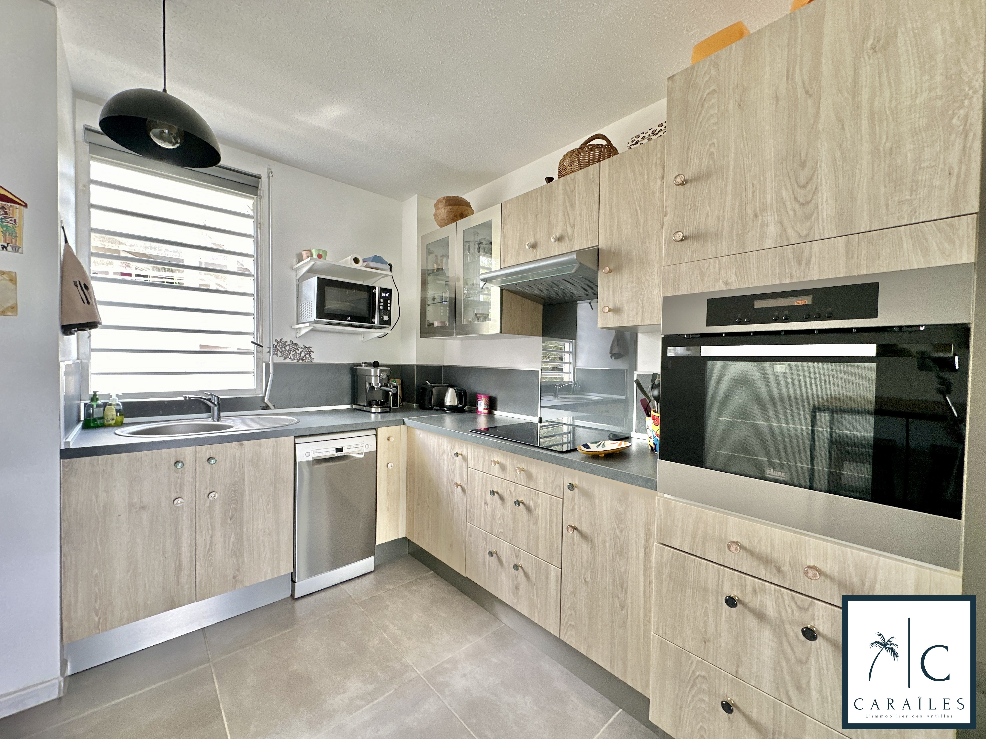 Caraîles, votre agence immobilière de Martinique vous propose : Un appartement 3P de 90m2 habitable ( 67m2 loi carrez) situé en rez-de-jardin sur les hauteurs de Fort-de-France avec une vue panora...