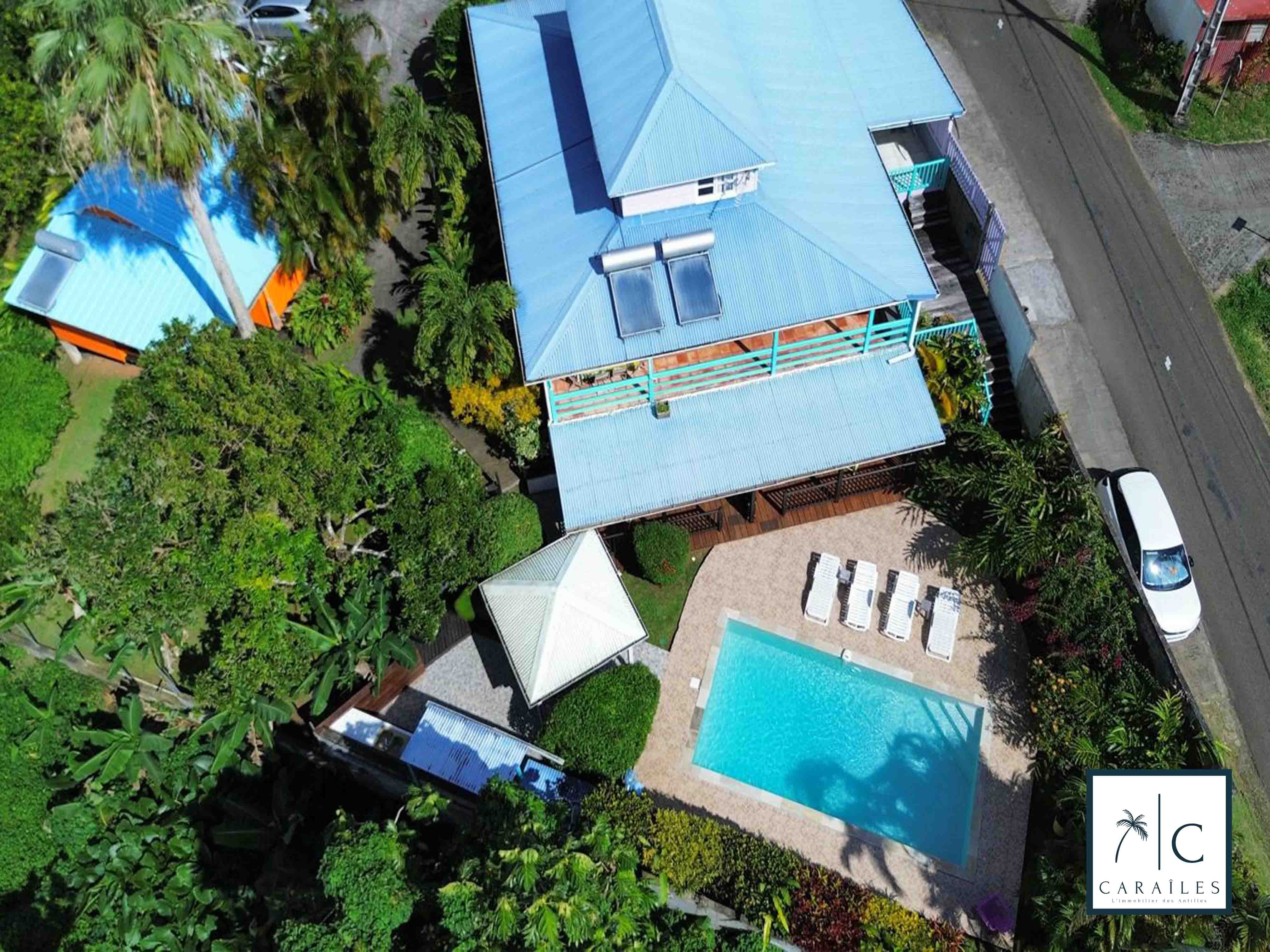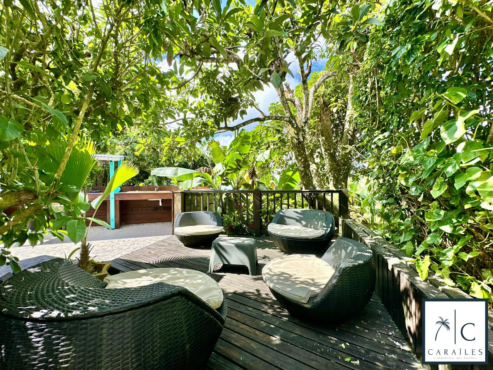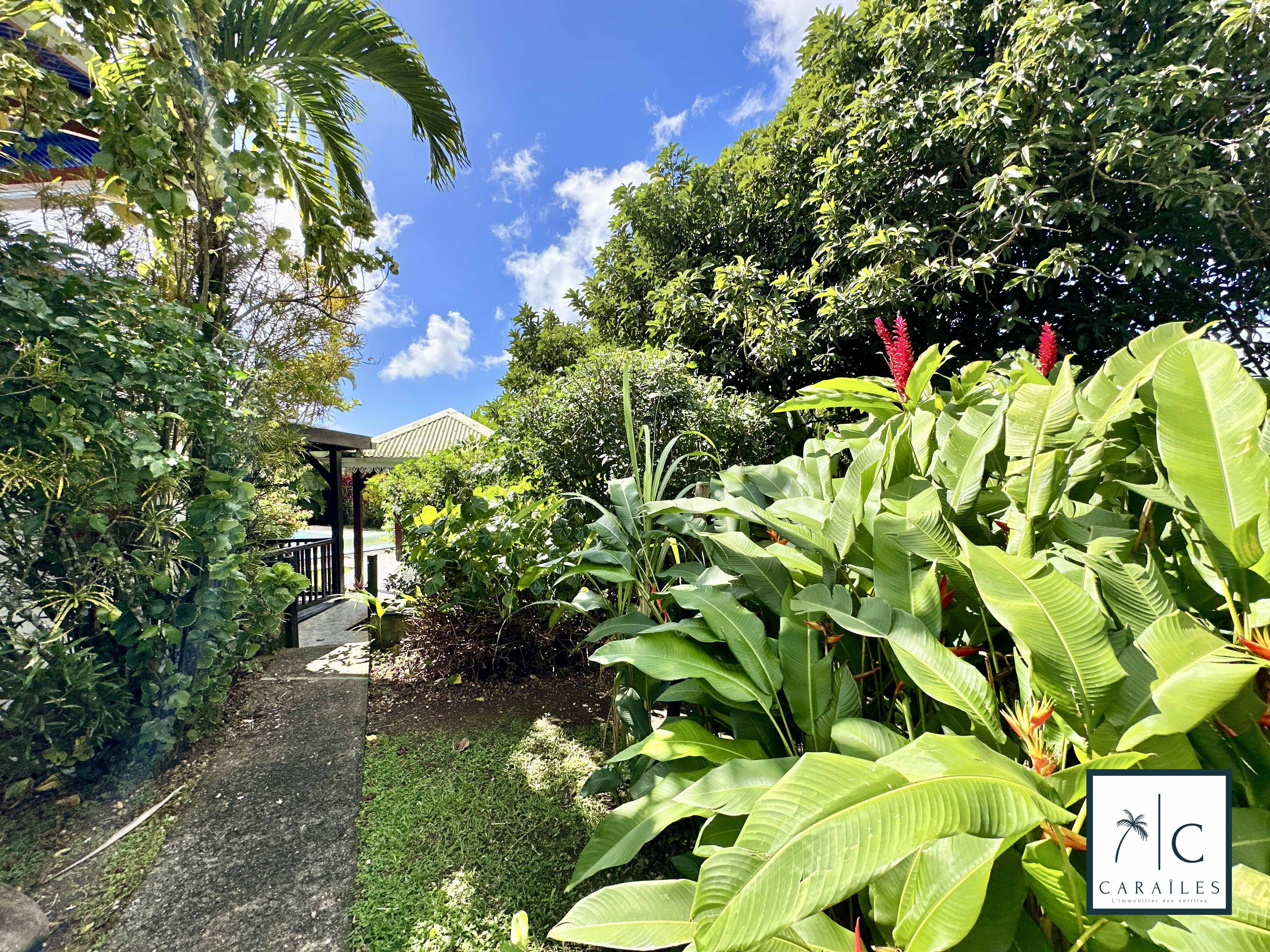 Le jardin tropical entoure la propriété, créant une atmosphère de calme et de fraîcheur. C'est l'endroit idéal pour se détendre après une journée sous le soleil des Caraïbes.